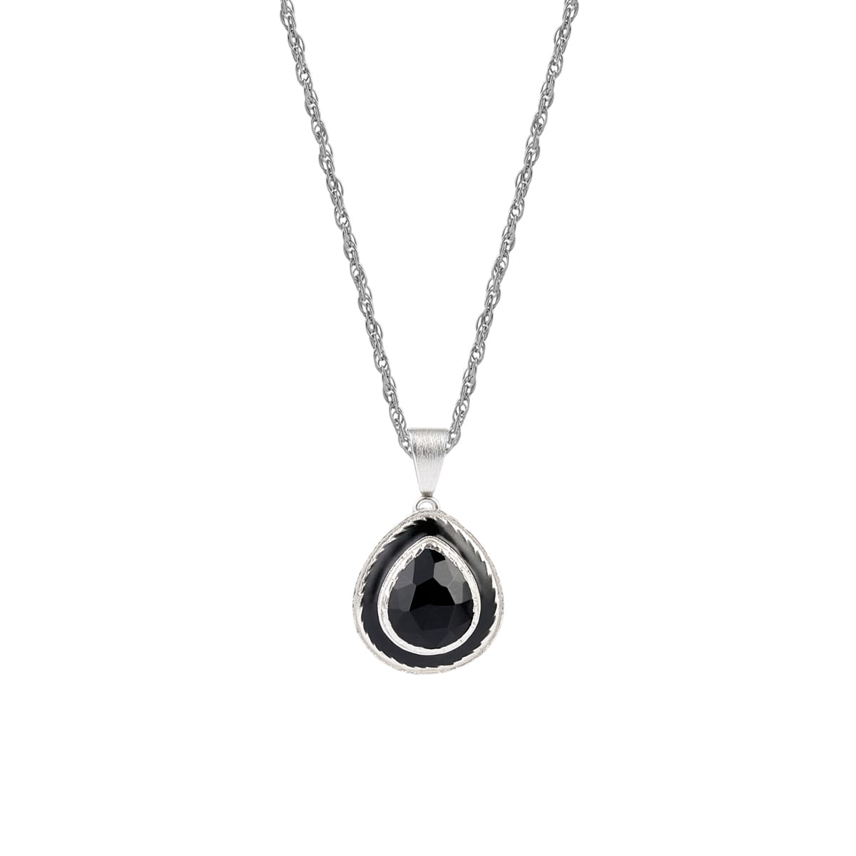 Lange Silberkette mit doppelseitigem Tropfenanhänger